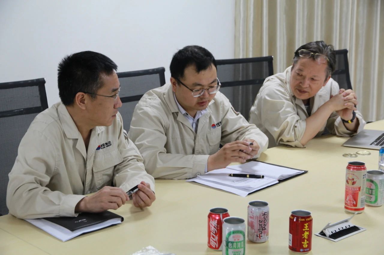 石磊(中)與技術(shù)專家探討罐體料技術(shù)質(zhì)量問題