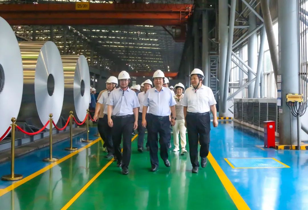 在豫聯集團高精鋁材鋸銑、熱軋生產現場,考察團一行認真察看了企業鋁精深加工生產線及產品展示臺,聽取了企業產業規模、綠色發展以及生產工藝、裝備技術、產品市場等情況介紹,一路走、一路看,邊觀摩、邊交流,對企業在生產經營和助力地方經濟社會發展等方面取得的成績表示肯定和贊賞。