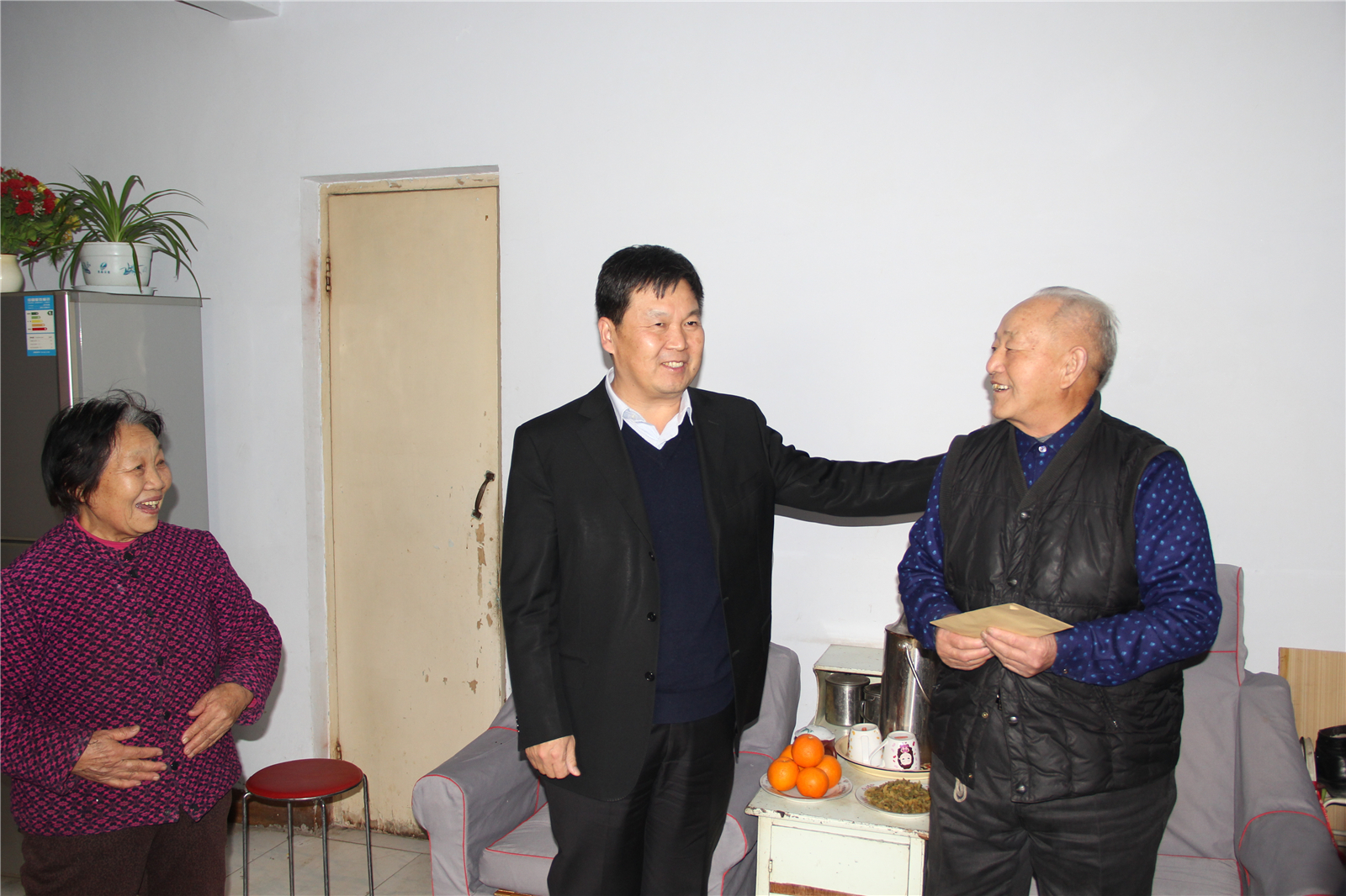 每到一戶家庭,賀懷欽董事長都仔細詢問退休老干部和困難員工的身體狀況及生活情況,為他們送上了米、面、油和慰問金等節日慰問品,切實幫助解決員工的實際生活問題。在退休老干部王欽貴家中,賀懷欽董事長首先祝福他新春快樂、闔家幸福,然后與王欽貴一并坐下來進行親切交談。王欽貴激動地說:“企業就是我們的靠山,公司領導親自登門慰問,我們全家十分感謝,我將一如既往地關心、支持集團公司的發展,衷心祝愿我們的豫聯集團建設好、發展好,經濟效益芝麻開花節節高。” 賀懷欽董事長充滿感情地說:“公司的發展凝結著退休老同志的心血和汗水,公司不會忘記,希望大家為公司轉型發展積極建言獻策,希望大家的日子越過越紅火。”