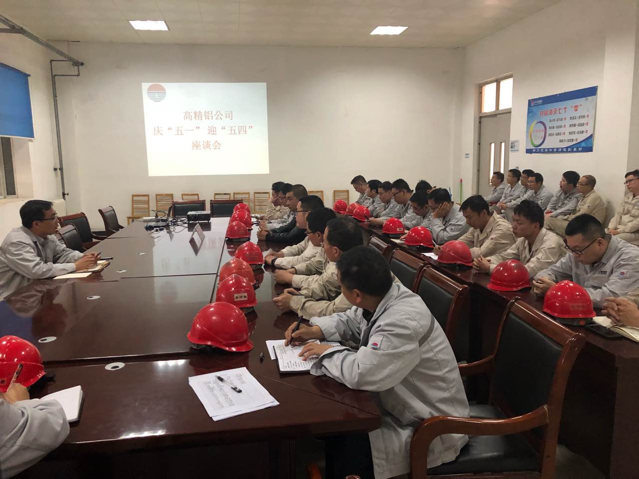 為大力弘揚勞模精神、工匠精神,進一步激發廣大員工立足崗位爭先創優的熱情,為公司圓滿完成生產經營各項任務鼓勁加油,4月29日下午,中孚高精鋁材公司在生產區會議室召開了慶“五一”、迎“五四”座談會,集團公司勞動模范,中孚高精鋁材公司勞動模范、技術比武優秀個人和青年員工代表共40余人參加了會議。