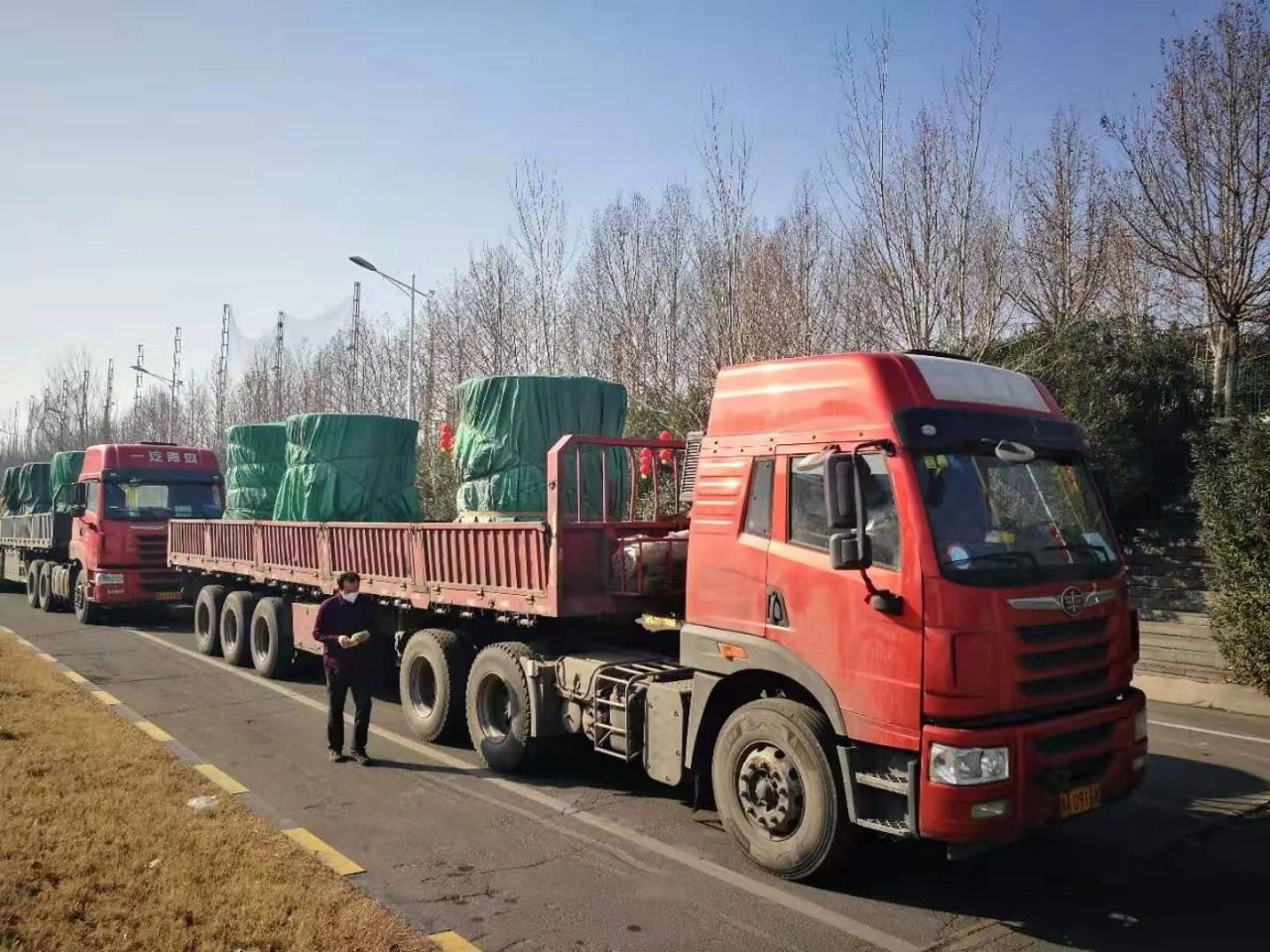 在鞏義市政府協(xié)調(diào)幫助下,解決了外地物流公司車輛在當?shù)氐某鍪袉栴}和在鞏義的入市問題。在集團公司各部門及兄弟單位支持下,緊急調(diào)用符合條件的內(nèi)部車輛進行改裝,配備了防雨篷布,滿足了應(yīng)急運輸?shù)能囕v需求。